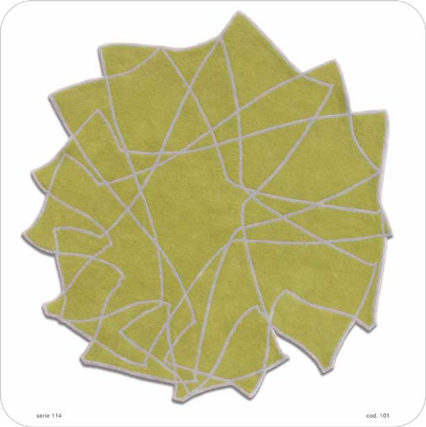 design Monica Graffeo • NOTE TECNICHE > Composizione vello: 100% Lana Nuova Zelanda ad origine certificata (qualità Extra, anti peeling - no fibre disperse ) - Finitura del dorso: per una perfetta aderenza ad ogni tipo di pavimento, a garanzia della sicurezza vostra e dei vostri cari, la finitura include l'applicazione di un reticolo impregnato con lattice avente effetto antisdrucciolo. Costruzione: handtufting (trapuntatura manuale) con tecnica cut pile (pelo rasato) con scolpitura. Altezze nominali (pelo): 8 mm Spessore del manufatto (max):circa 1,5 cm Densità (solo fibra): 2,44 Kg/m2 / 4,5 lbs /