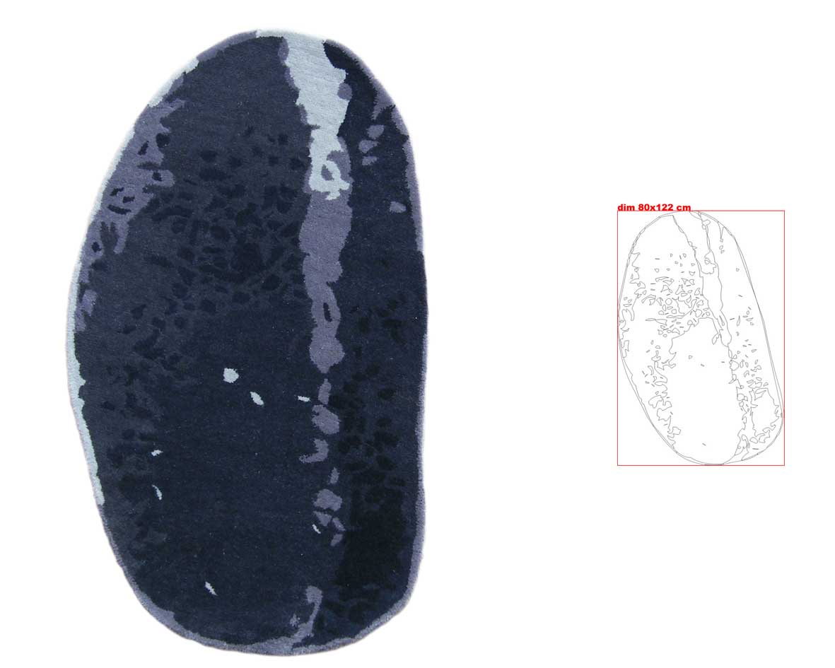 design Studio Art Fabrica • NOTE TECNICHE > Composizione vello: 100% Lana (blended, Nuova Zelanda + Bikaner) - Finitura del dorso: fondo rivestito in tela Costruzione: handtufting (trapuntatura manuale) con tecnica cut pile (pelo rasato). Altezze nominali (pelo): 15mm Spessore del manufatto (max):circa 2 cm Densità (solo fibra): Kg/m2