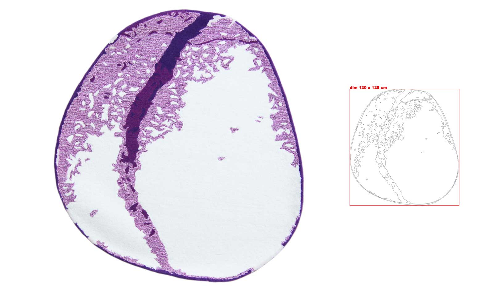 design Studio Art Fabrica • NOTE TECNICHE > Composizione vello: 100% Lana (blended, Nuova Zelanda + Bikaner) - Finitura del dorso: fondo rivestito in tela Costruzione: handtufting (trapuntatura manuale) con tecnica cut pile (pelo rasato). Altezze nominali (pelo): 15mm Spessore del manufatto (max):circa 2 cm Densità (solo fibra): Kg/m2